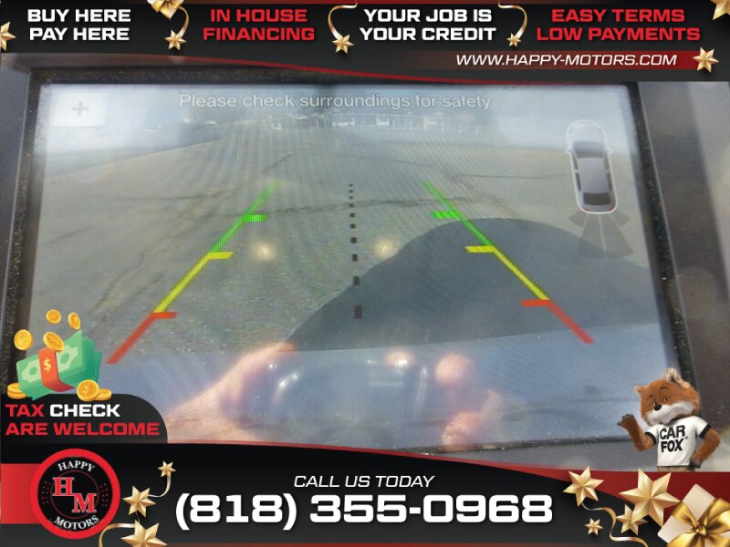 - Rearview camera displayed in dash with rearview monitor and front/rear parking sensors.